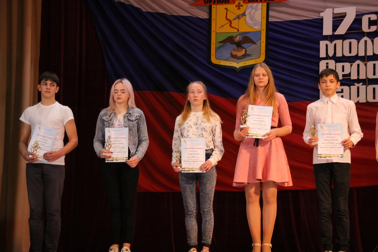 Седьмого ноября состоялся XVII Слет молодежи Орловского района. Городской Центр культуры и досуга принимал на своей сцене лучших представителей нового поколения. Студенты, школьники, молодые работники производственной и социальной сферы получили заслуженные награды за успехи в учебе, спорте, трудовой и общественной деятельности. Воспитанники ДДТ "Мозаика" также выступили победителями в районном слете в номинациях: "Молодость.Здоровье.Спорт" - Матвей Коршунов; "Активность - залог успеха" - Виктория Пономарёва; "Золотое сердечко" - Мария Скурихина. Поздравляем наших ребят! | |