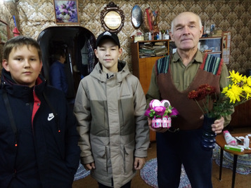 Дети из волонтерской отряда "Радуга Добра" и объединение "Юный дизайнер" поздравили педагогов-ветеранов с Днём учителя.