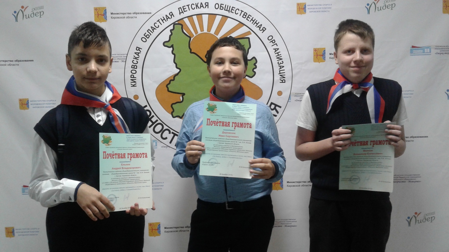 9 декабря Кировская областная детская общественная организация "Юность Вятского Края" отметила свой 25-летний Юбилей. Почетным правом представлять ДДТ на празднике были удостоены педагоги: Двинина Ольга Николаевна, Ковязина Елена Валерьевна, Кырчанов Сергей Алексеевич и воспитанники объединения "Арлекин": Малков Владимир, Даровских Иван, Елькин Андрей. Все педагоги и ребята награждены грамотами за активное участие в деятельности Кировской областной детской общественной организации "Юность Вятского Края". | |