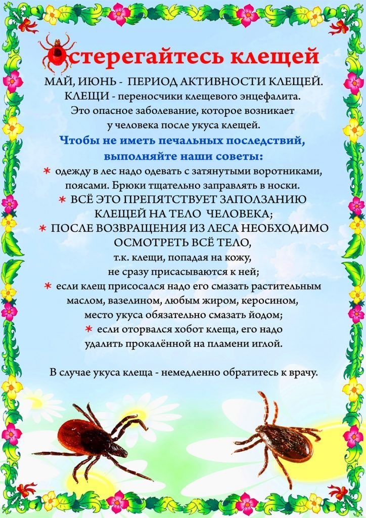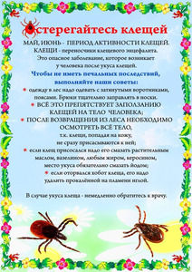 Основная мера защиты – не допускать присасывания клещей. Для этого используют средства индивидуальной защиты: рациональное использование обычной одежды и отпугивающие средства (репелленты). | |